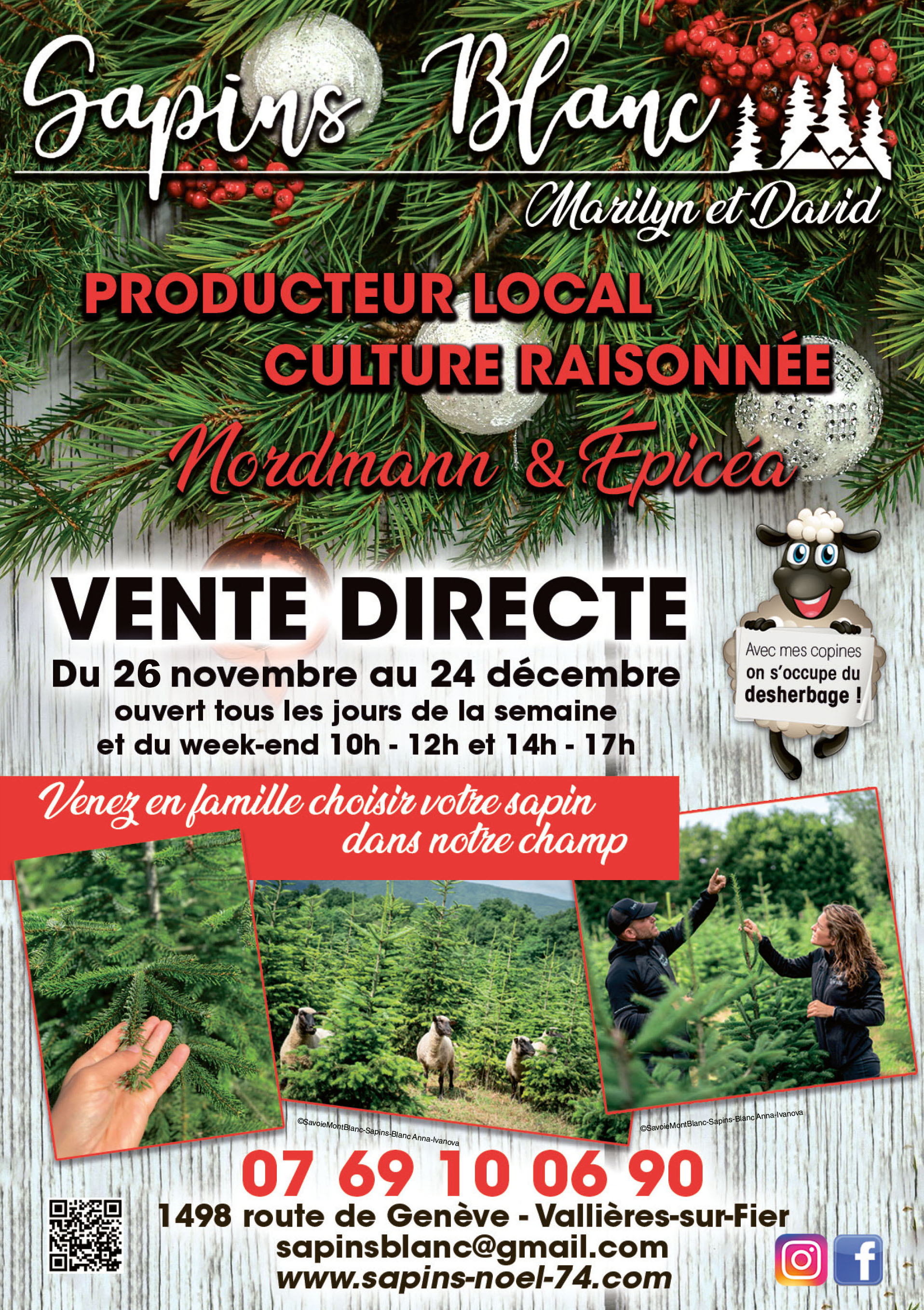 Nous (David et Marilyn Blanc) travaillons avec notre papa (Gérard) dans la Culture raisonnée, familiale et locale de sapin de Noël aux environs d’Annecy, Aix-les-Bains, Chambéry en Savoie et Seyssel Ain. Nous vous garantissons une fraicheur maximale en fabricant le plus tard possible et par le biais d'un circuit-court.